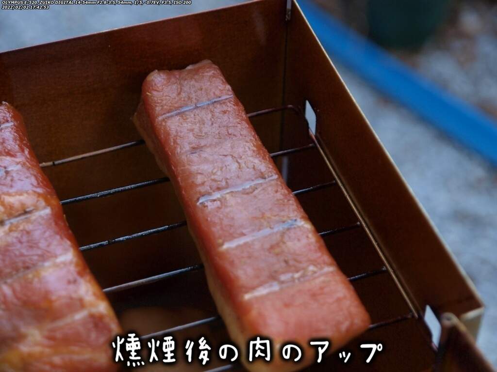 美味そうではあるが、燻煙してすぐに食べてもあまり美味しくはない。 一晩寝かせることで本来の美味さを味わえるようになる。